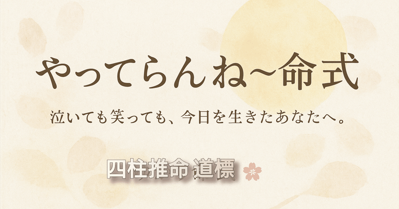 言葉で人を癒やす、四柱推命語り人。 ”命式”を「我慢の診断」じゃなく「心の物語」に。 ここでは、10人の日干が語る「やってらんね〜命式」シリーズを中心に、泣けて、笑えて、ちょっと楽になる言葉を届けています。 「頑張れない日」も、 「どうでも...